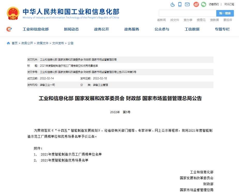 February和能網(wǎng)絡(luò)協(xié)同制造榮登工信部2021年度智能制造優(yōu)秀場景榜單